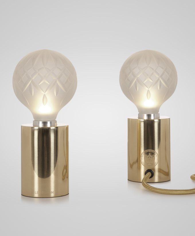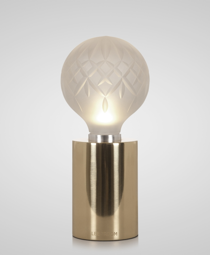The Clear Crystal Bulb Table Lamp is a perfect accompaniment for a desk, table or shelf. It comes complete with a Clear Crystal Bulb, a US electrical plug and an inline switch on the gold fabric cable. The Lee Broom logo is subtly etched on to the gold plated base.