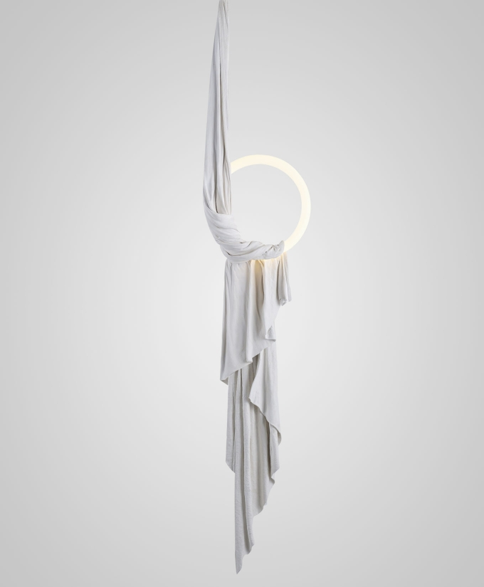 Requiem is an ethereal series of limited-edition pieces. Each sculpted by hand, by Lee Broom in our London factory. The collection takes inspiration from the marble drapery on ancient statues and sepulchral sculptures. Each piece appearsweightless and fluid but is solid in form, made by hand-draping fabrics in plaster through and around illuminated glass. These ghostly forms are then sculpted with more plaster into their final shape and set until solid. The effect is one of fragile drapery that appears to capture a floating light source. To celebrate the 15-year anniversary of Lee Broom, each of the four limited edition Requiem designs is limited to 15 pieces.