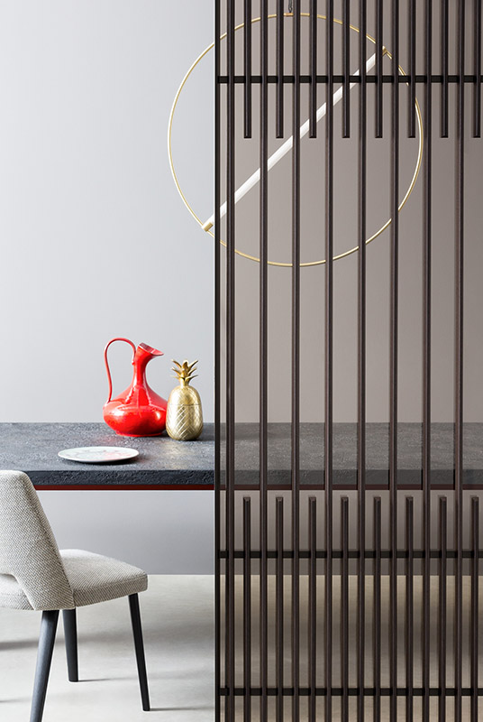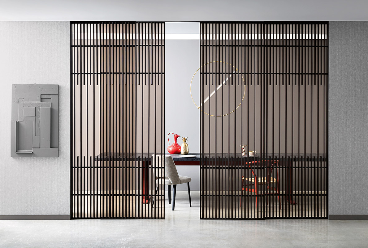 La porta per interni esterno muro Drive è un sistema combinato di porta scorrevole e di binario telescopico predisposto per essere installato direttamente a parete. Può leggersi come una superficie appoggiata alla parete.