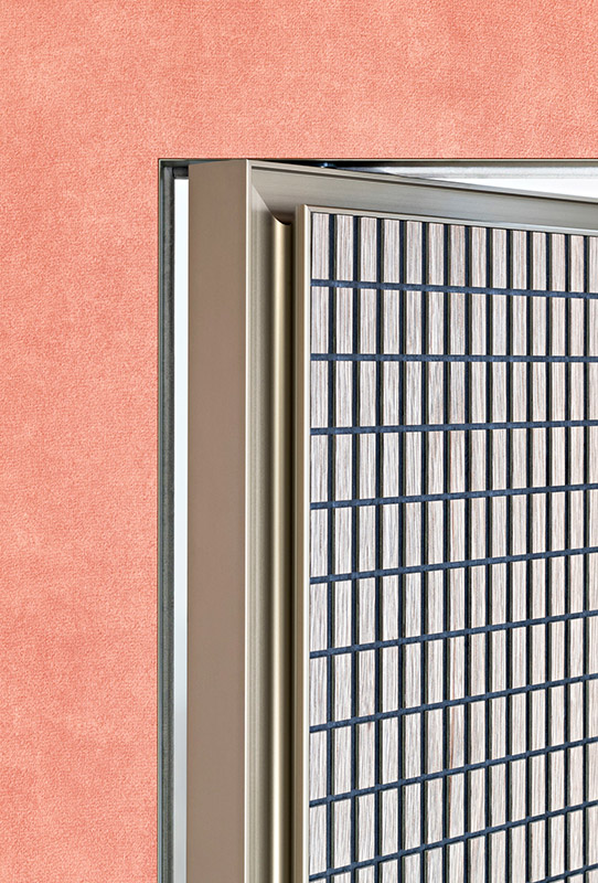 La porta per interni Altaj, disegnata da SBGA, è concepita per andare oltre il minimalismo della porta a filo muro. Il modello infatti non scompare nella parete, ma è anzi evidenziato dal profilo metallico che incornicia l’anta e ne esalta la finitura.