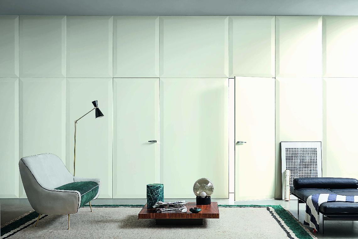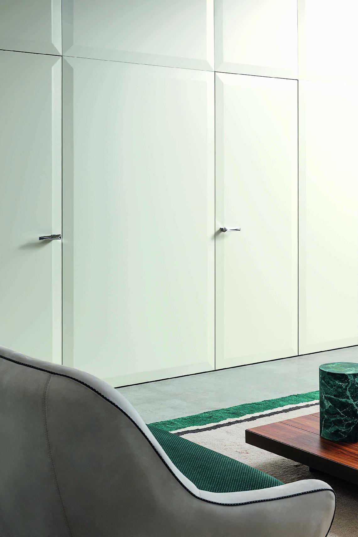 Edges, by Marco Piva, interprets the door as a flexible and innovative element, able to expand into the surrounding surfaces as decorative facing. A sophisticated architectural extension, boiserie Edge is able to characterize the space thanks to the characteristic cuts of the panel that lend volume to a normally two-dimensional surface. The delicate and geometric relief pattern plays with light and shadow, bestowing unprecedented grace on the passage between rooms and spaces.