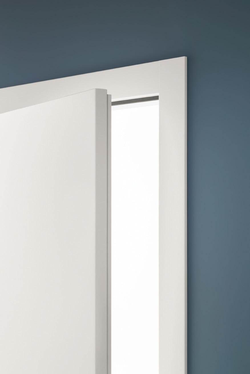 With the frame and walls perfectly flush, the slim line blends with the purity of the surfaces. The reversed edge and the opening to the interior confer an stylish effect of continuity with the sides of the corridor. Available in the new elegant finishes, it is versatile and adapts to solid wall, plasterboard and moveable wall systems.