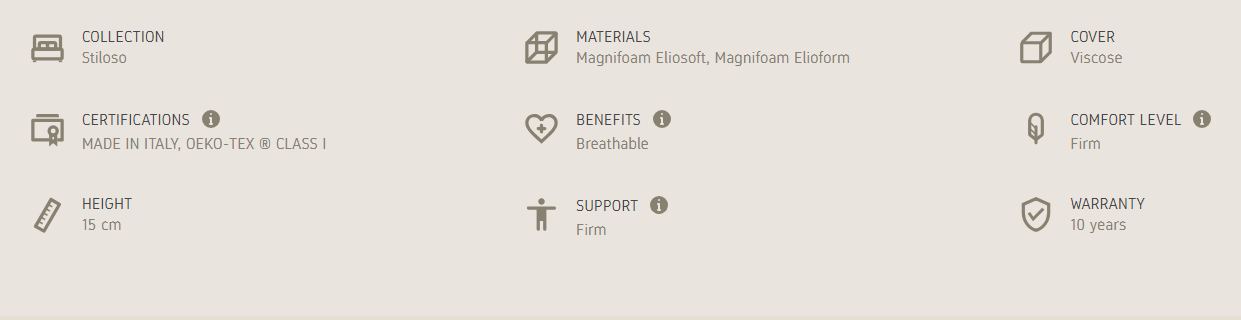 Stiloso 6 of the Stiloso line is the ideal mattress for those seeking a firm support without having to compromise the comfort. All at 15 cm of height.