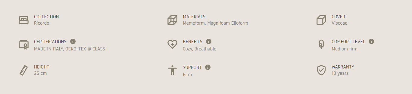 Ricordo 10 of the Ricordo collection is the ideal mattress for anyone who wants a firm but comfortable and cozy support to their back, thanks to the Memoform contained in the padding. All in 25 cm of height.