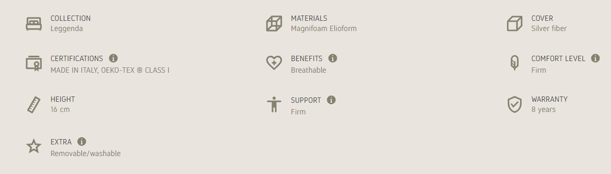 Vitale Orthopedic with its exclusive cover in silver fiber provides added comfort while you are sleeping, thanks to its exceptionally natural antibacterial, thermal and breathable properties. A firm comfort for a perfect support to the back.