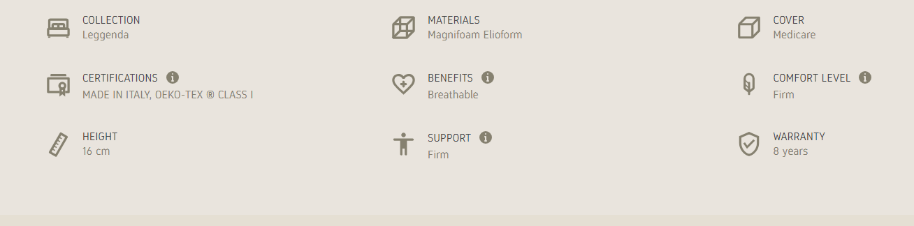 Notte Basic thanks to its exclusive cover in Medicare fabric, guarantees a high level of hygiene and antibacterial treatment. The Elioform contained in the base, provides a firm comfort without causing spinal compression.