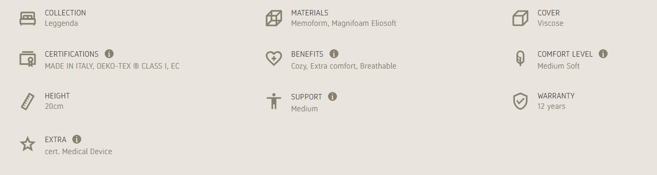 Providing a soft and light sensation on the skin throughout the night, Carezza 8 makes the body come into direct contact with the core of the mattress. The cozy Memoform adapts perfectly to the shape of your body, providing unsurpassed comfort.
