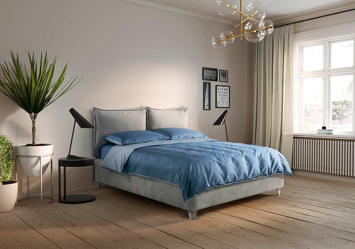 The Fiesole bed from the Magniflex collections, with its soft cushions integrated in the headboard, offers a sense of serenity and relaxation.