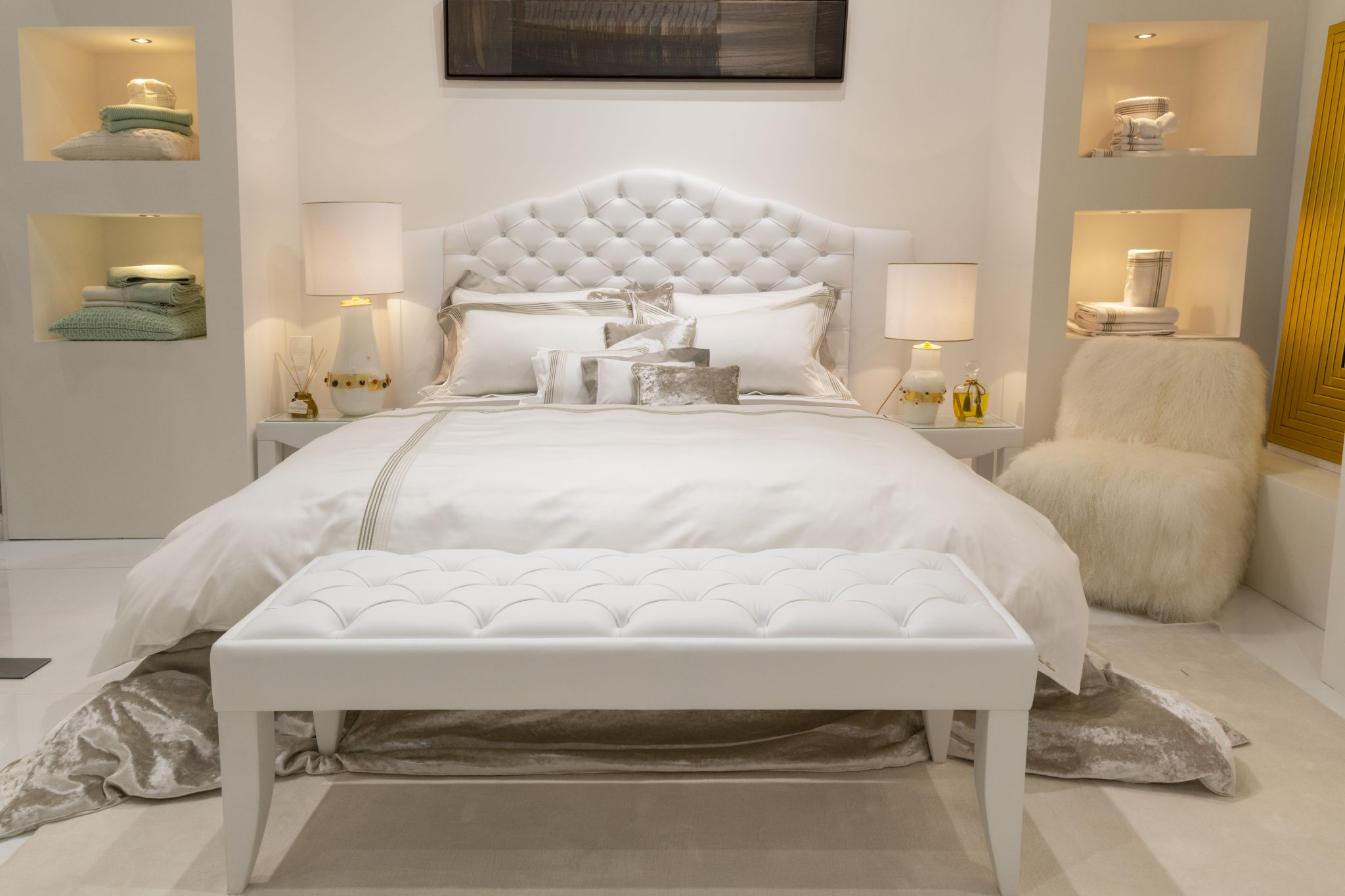 Copriletto in lino imbottito bordo velluto