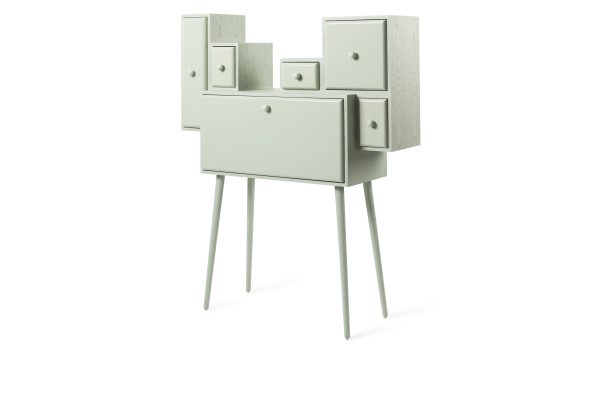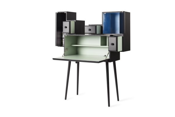 Confidence of a cloud寫字桌的外形由柜子與盒子堆疊而成。設計師通過作品向過去在古董寫字桌上親筆寫信的年代致敬。Confidence of a cloud在兼具功能的同時,充滿神秘感。藏于某只柜子內部的桌面和桌肚維持著隱私。而打開另一只柜子,一片飄著云朵的天空藏于其中,供使用者短暫地逃離現實,暢游夢想。