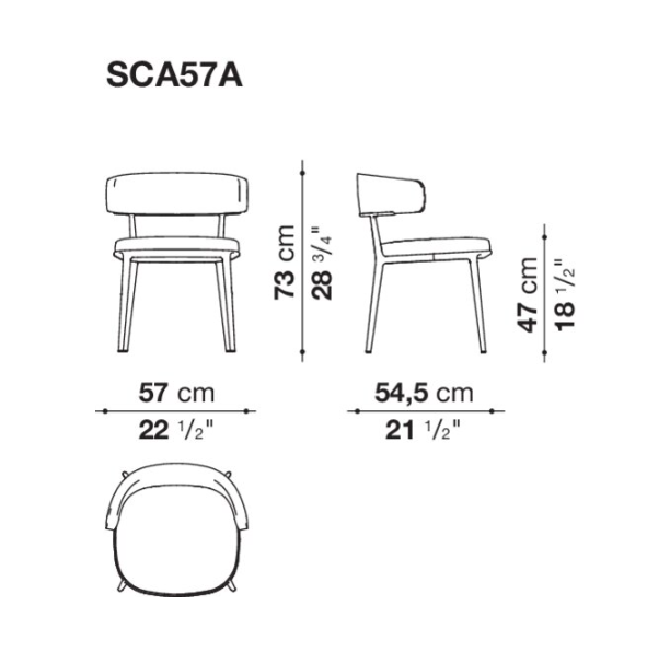 Caratos is a series of upholstered seats united by a recognisable frame in die-cast aluminium. One version characterised by an enveloping upholstered back that also forms the armrest, Caratos is a chair that is free from postural constraints, favouring conversation and interaction with those nearby. Another version, available only in leather, stands out for its basic, geometric frame with highly calibrated thicknesses and details. This is a decidedly light product, not just in terms of its essential, linear design, but also due to its reduced weight ensuring easy handling. The seat and backrest are formed by plastic structural panels on which rests a layer of polyurethane which is then covered in premium leather. They are also part of the collection hte stools with a swivel seat, capable of adapting to heterogeneous furnishing settings through contemporary lines reminiscent, however, of certain twentieth century furniture styles.