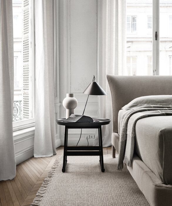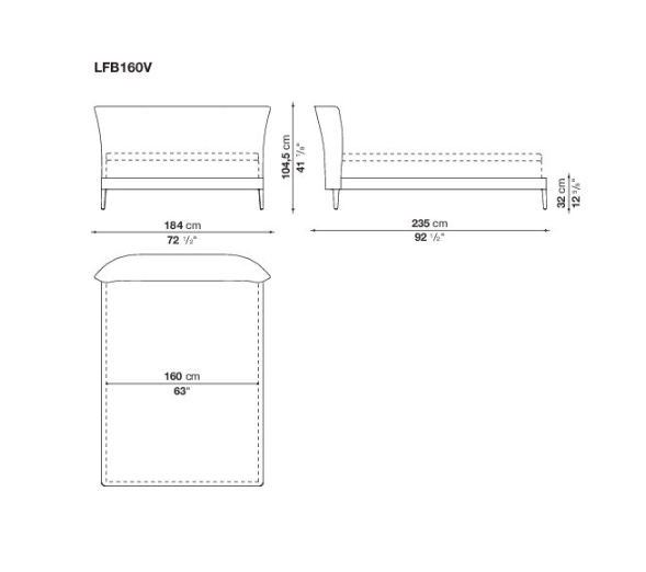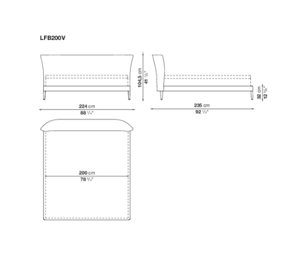 The Febo bed is available in different sizes with an elegant headboard and the added comfort of two back cushions. The single material and the visible blanket stitch are the characteristic features.