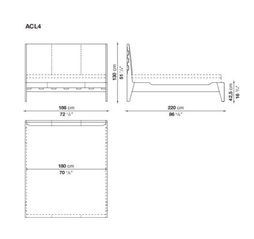 A double bed with a clean line and perfect proportions, Talamo combines luxury materials with a refined interplay of details, such as the combination of leather bands on the cover with the unusual shape of the wood frame, available in different finishes.