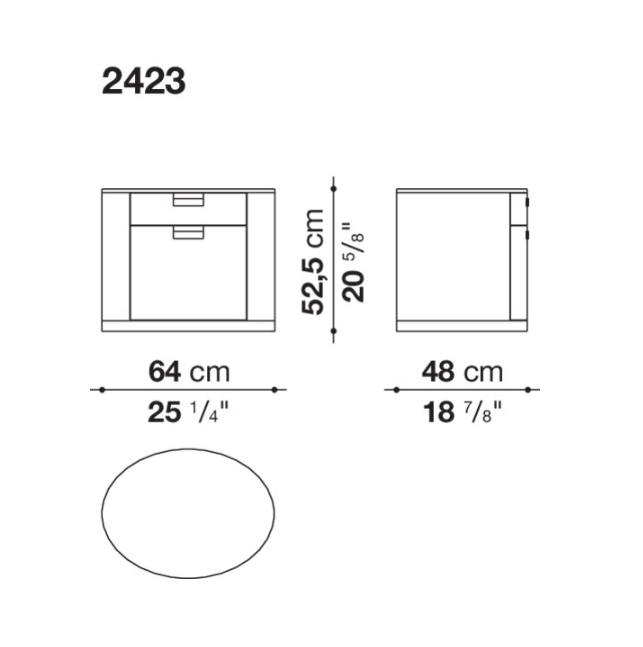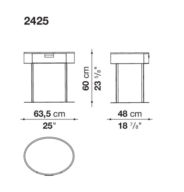 Perfect to be placed next to the bed, Amphora is presented in two versions: one has compact oval shape and holds two drawers of different sizes, the second one has a refined metal structure and hold one single drawer.