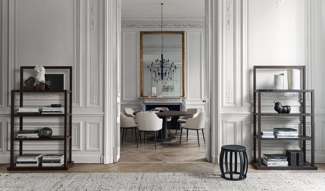 étagère serving different purposes, designed mainly for the living area. Offer different finishes to choose from among the essences in the collection.