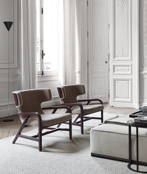 A small armchair that has the vocation of a unique piece, able to sit next to a traditional sofa, which