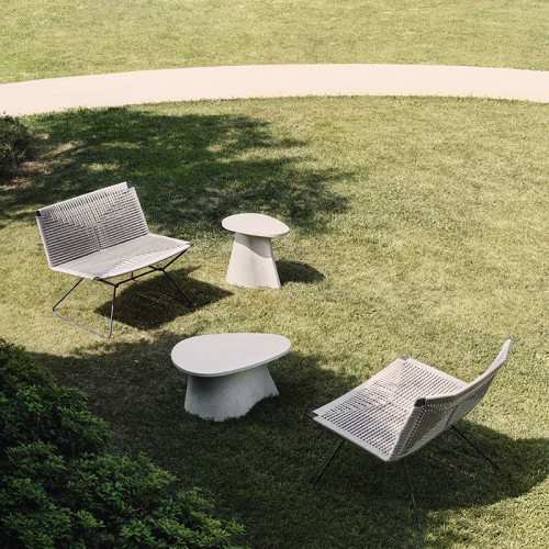 The Belgian designer and sculptor Xavier Lust signs Fossil for MDF Italia, an eclectic furnishing accessory that can be used as a low table. A highly versatile design for a family of elements, revisited with more rounded, fluid lines. Built in lightweight concrete, it is suitable for use both indoors and outside, sporting a delicate, neutral finish echoing the nuances of an organic, natural universe.