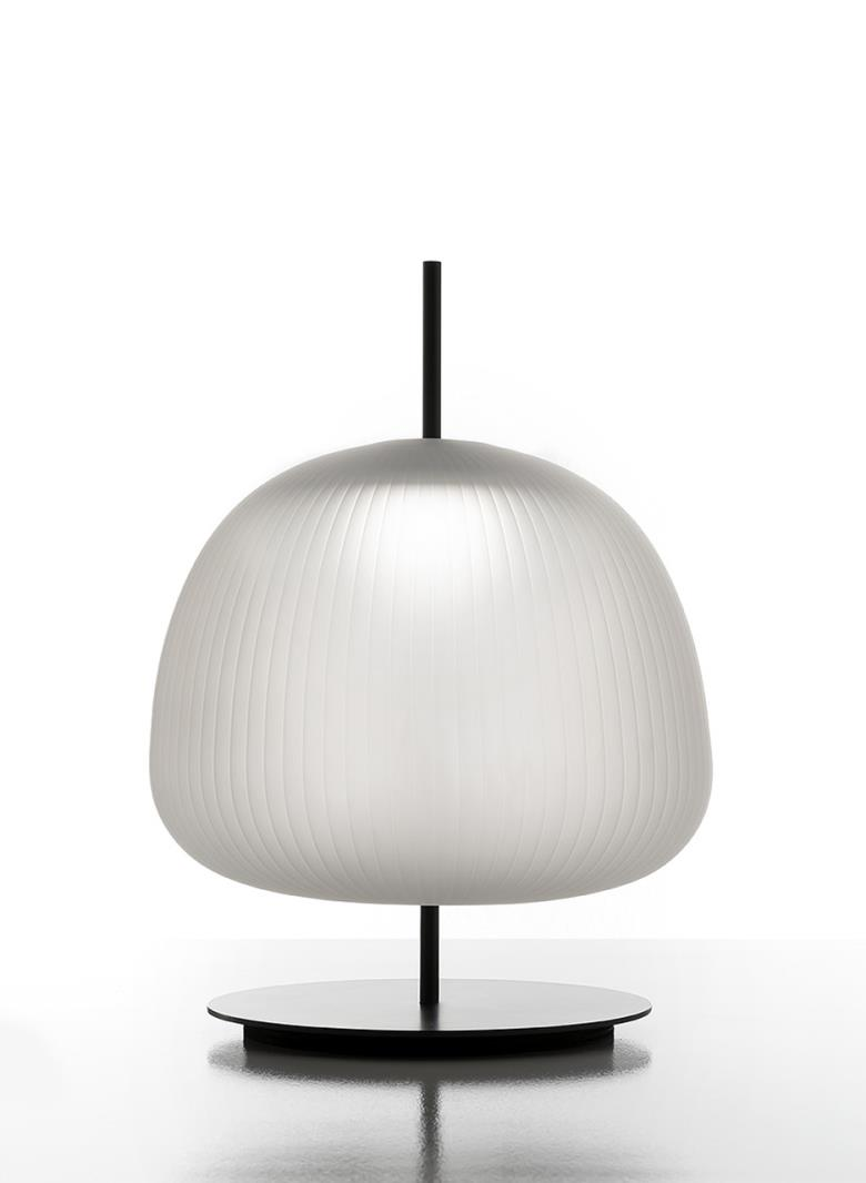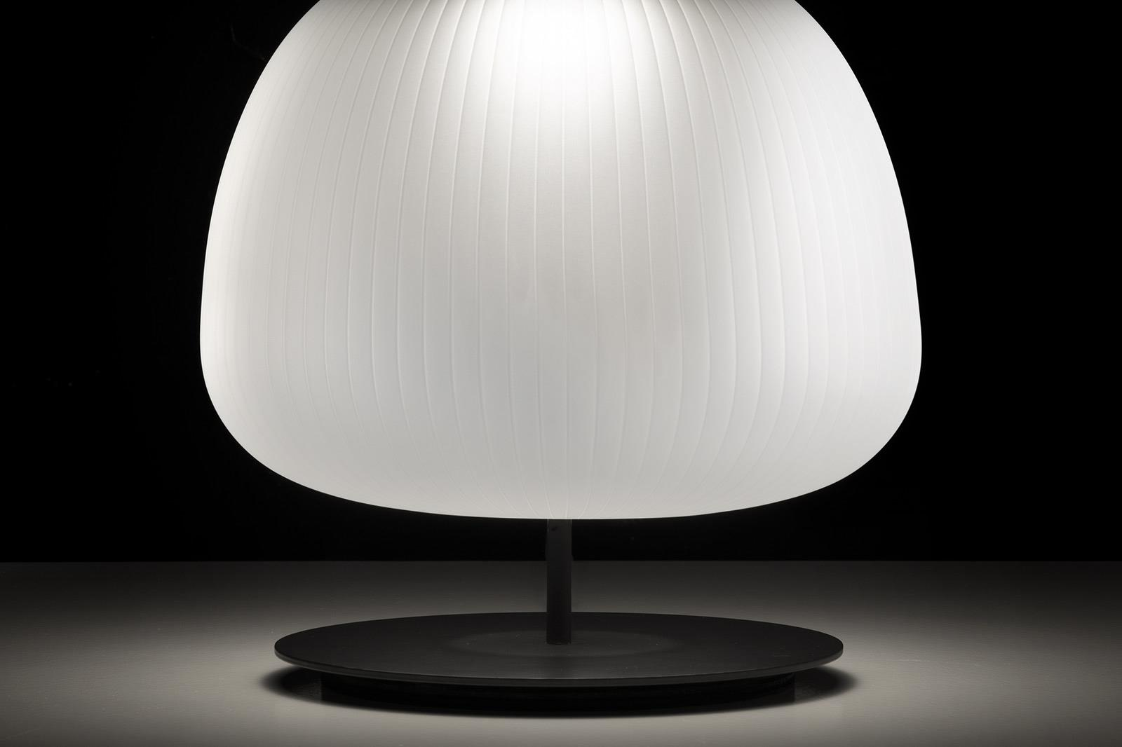 Suspension lamp. Hand blown titanium metallized glass dome with internal frosted bubble glass sculpture.