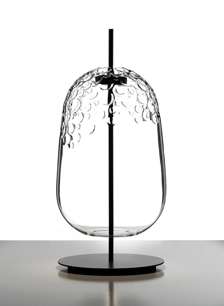 Suspension lamp. Hand blown titanium metallized glass dome with internal frosted bubble glass sculpture.