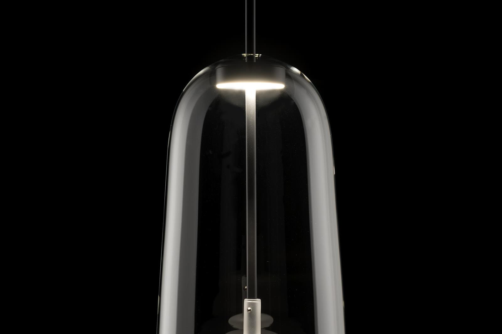 Suspension lamp. Hand blown titanium metallized glass dome with internal frosted bubble glass sculpture.