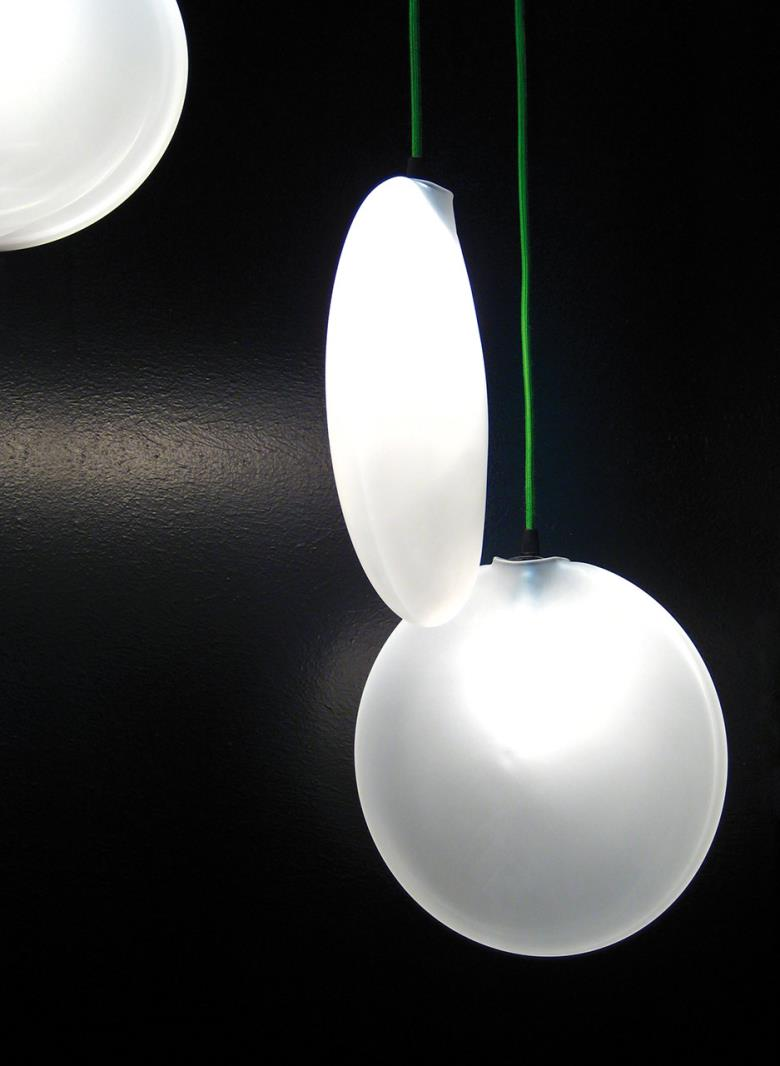 Suspension lamp. Hand blown titanium metallized glass dome with internal frosted bubble glass sculpture.