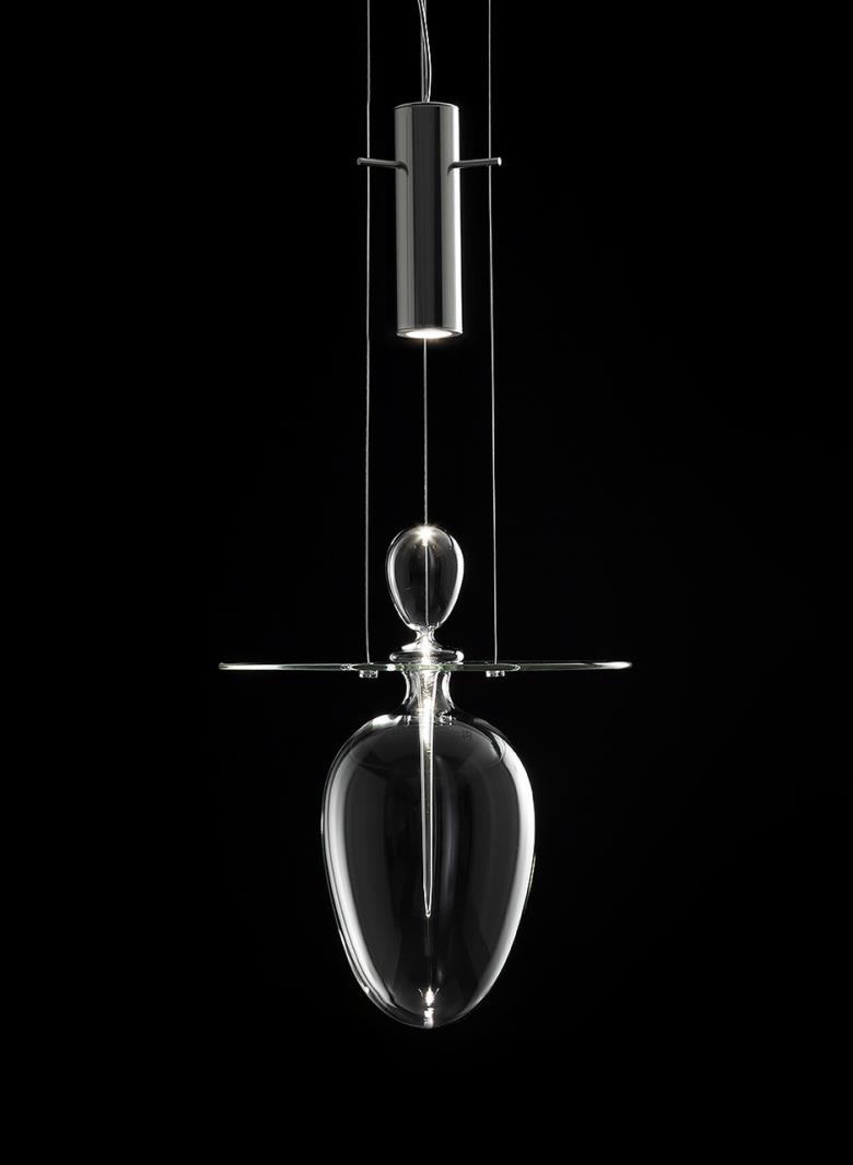 Suspension lamp. Hand blown titanium metallized glass dome with internal frosted bubble glass sculpture.