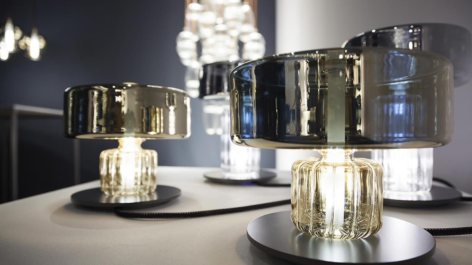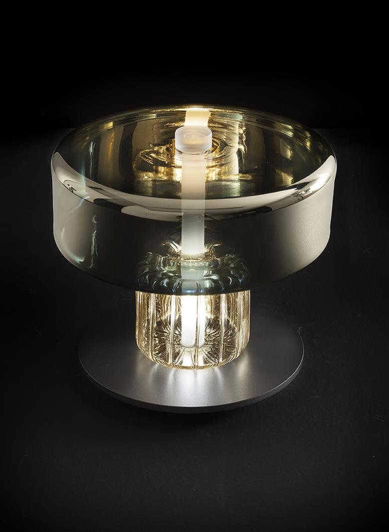Suspension lamp. Hand blown titanium metallized glass dome with internal frosted bubble glass sculpture.