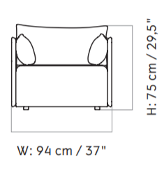 1 Seater: H: 59(75) cm, W: 94 cm, D: 90 cm, SH: 37 cm