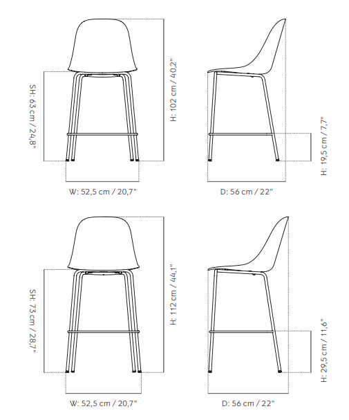 The Harbour Side Chair is also available with sleek bar- and counter-height base options that let you pull your favorite chair up to your favorite surface, whatever its height. Whether you love to eat, work and hang out at the countertop bar, or prefer the elevation of the high top, the new bar and counter versions invite you to pull right up. The slender and sculptural geometric bases are designed with a comfy crossbar for the feet at just the right height to prolong comfort and keep your posture in top form. The bases are available in black powder coated steel. MENU offers various Harbour Counter/Bar Side Chair variants available for expedited delivery.