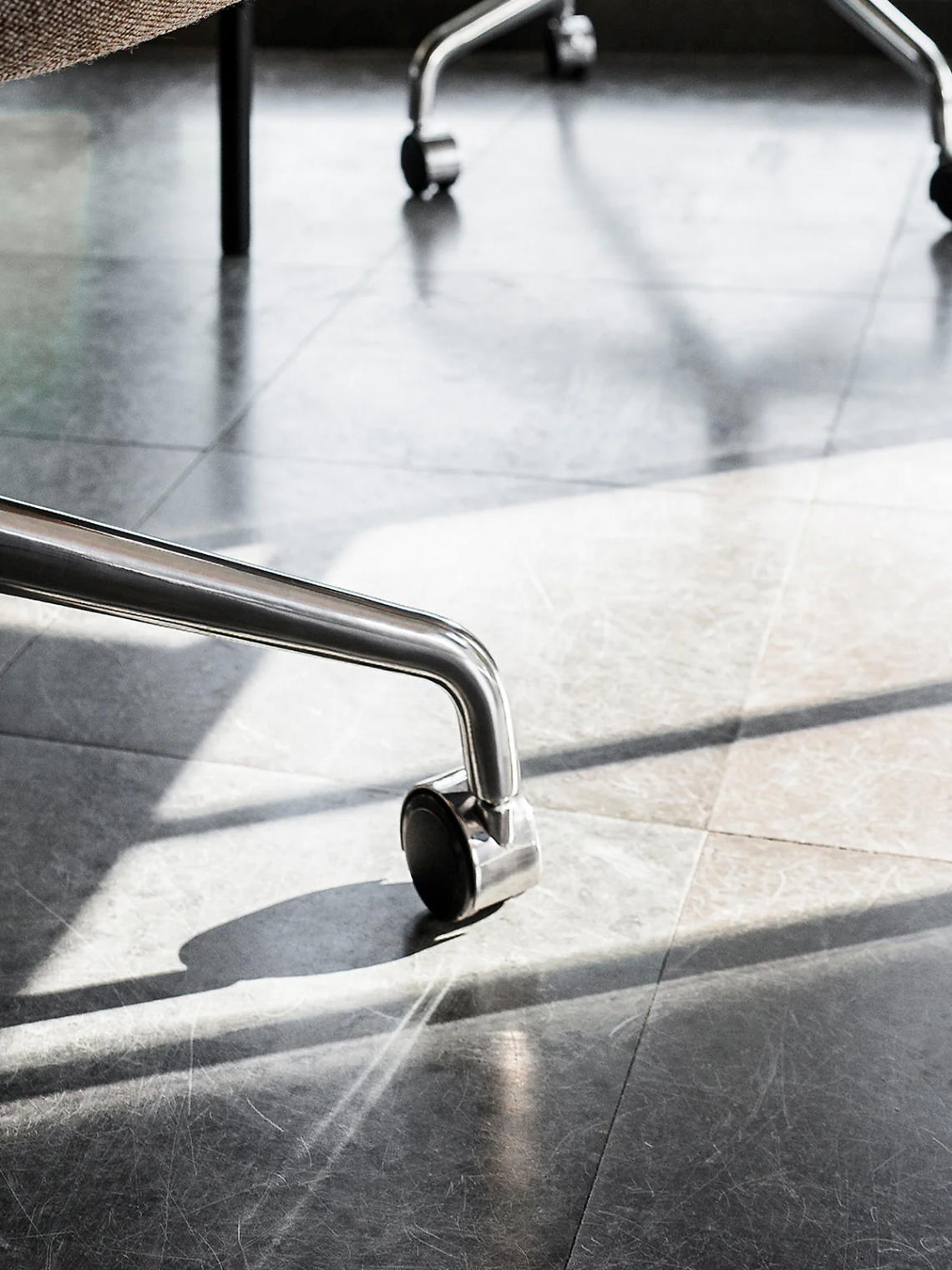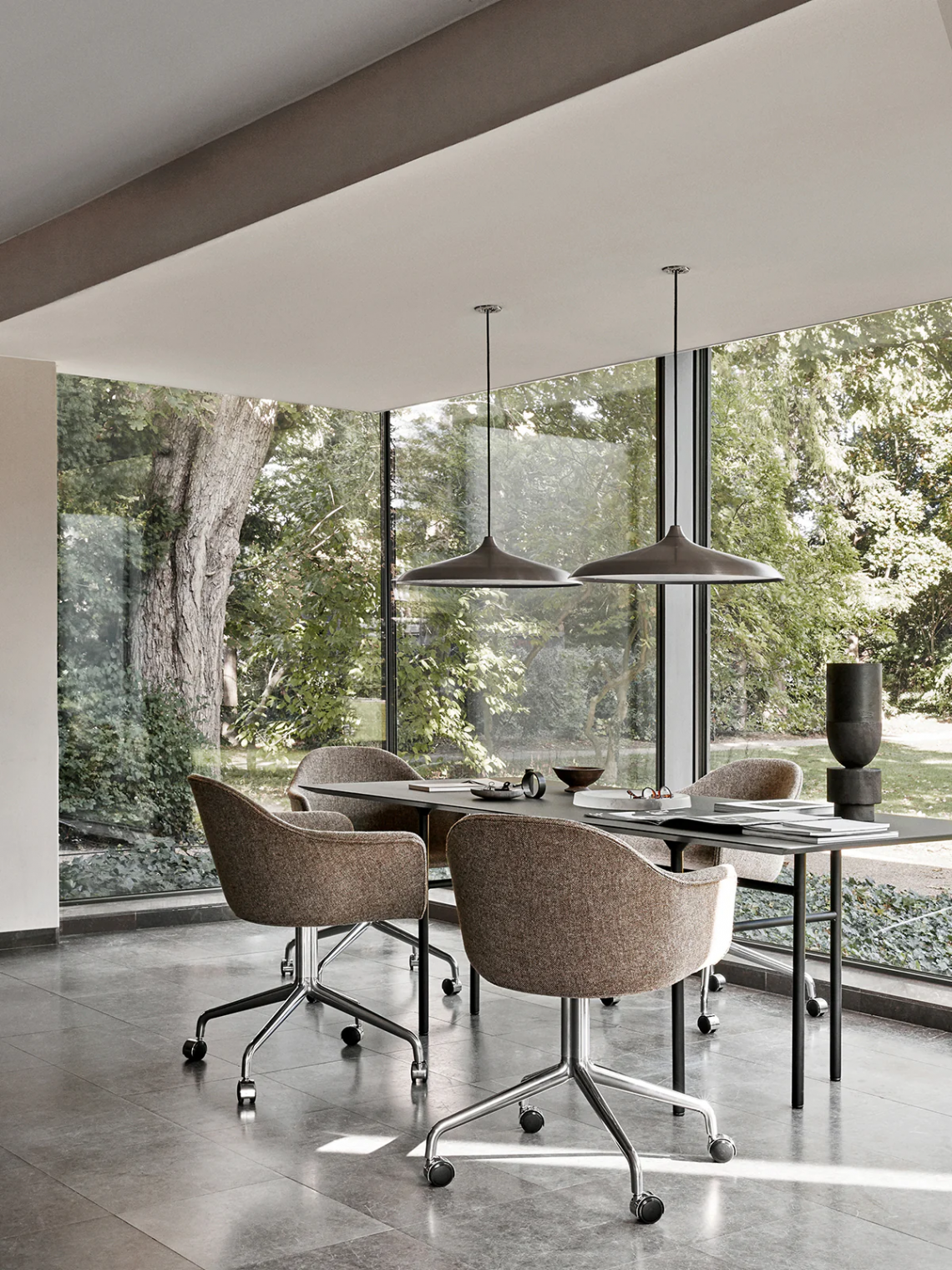 Once you’ve chosen the Harbour Chair shell style that will be cradling and supporting your body, you can now also choose a clover-shaped swivel base so you can spin around as needed – and roll around as wanted, should you opt for caster wheels. The base is available with either swivel or swivel with return options in two finishes – polished aluminum or powder-coated aluminum in black.