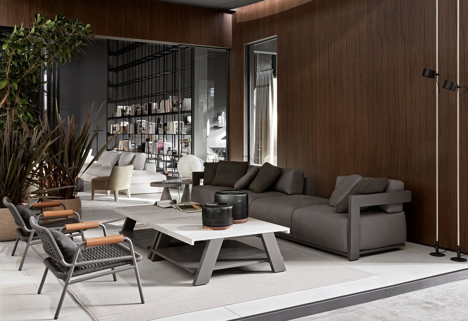 Modular sofa, armchair and lounge bed: the Claud collection stands out for its minimal design and soft cushions. Sophisticated and resistant, these furnishings are made of matt lacquered wood in different colours, that couples with soft paddings for an oasis of relaxation also in indoor environments.