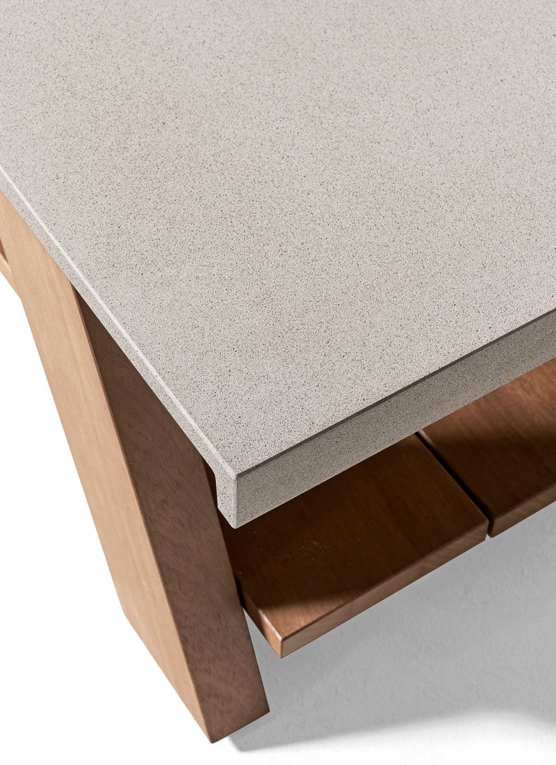 獻(xiàn)給那些喜歡材料本質(zhì)之美的人們:伊羅科實(shí)木和混凝土通過Joi Open Air變得栩栩如生. Joi Open Air匯集了不同大小的矩形桌子和方形邊桌,線條清晰。桌面專為戶外使用而設(shè)計(jì),采用Ductal?混凝土制成,這是一種最高品質(zhì)的材料,及其精細(xì)的天然礦物成分和有機(jī)纖維的組成,使其具有柔韌性。 淺灰色的飾面使Joi Open Air成為現(xiàn)代和城市舞臺的理想之選。