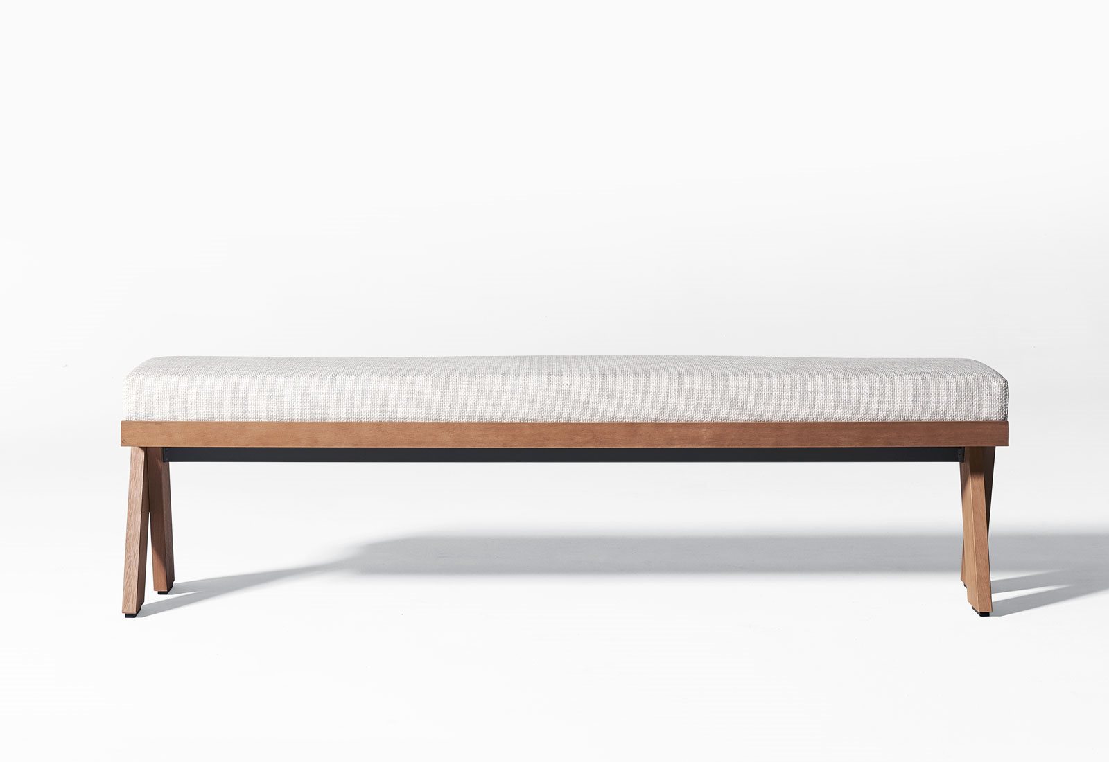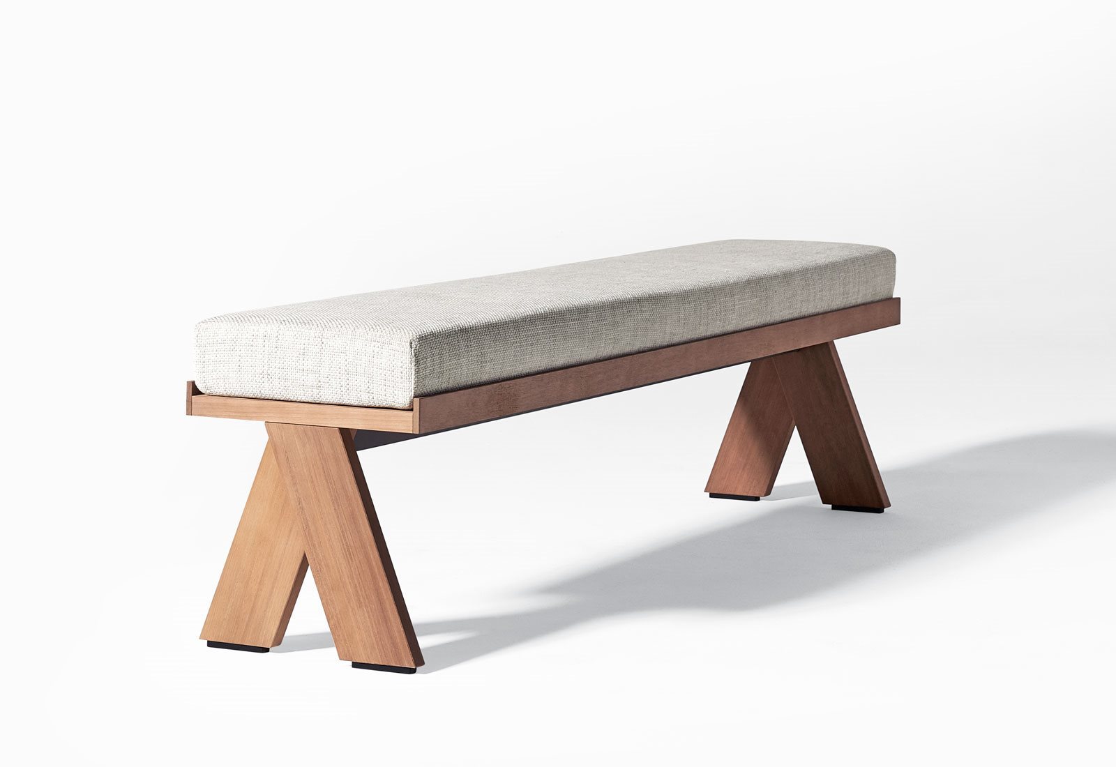 對于喜歡在戶外活動的人來說,這真是一個很不錯的長凳:Joi Open Air 從視覺角度上看,伊羅科木的框架底座顯得十分堅實和穩固。 在我們的圖冊上還可以選擇各種舒適的戶外面料用于凳墊。