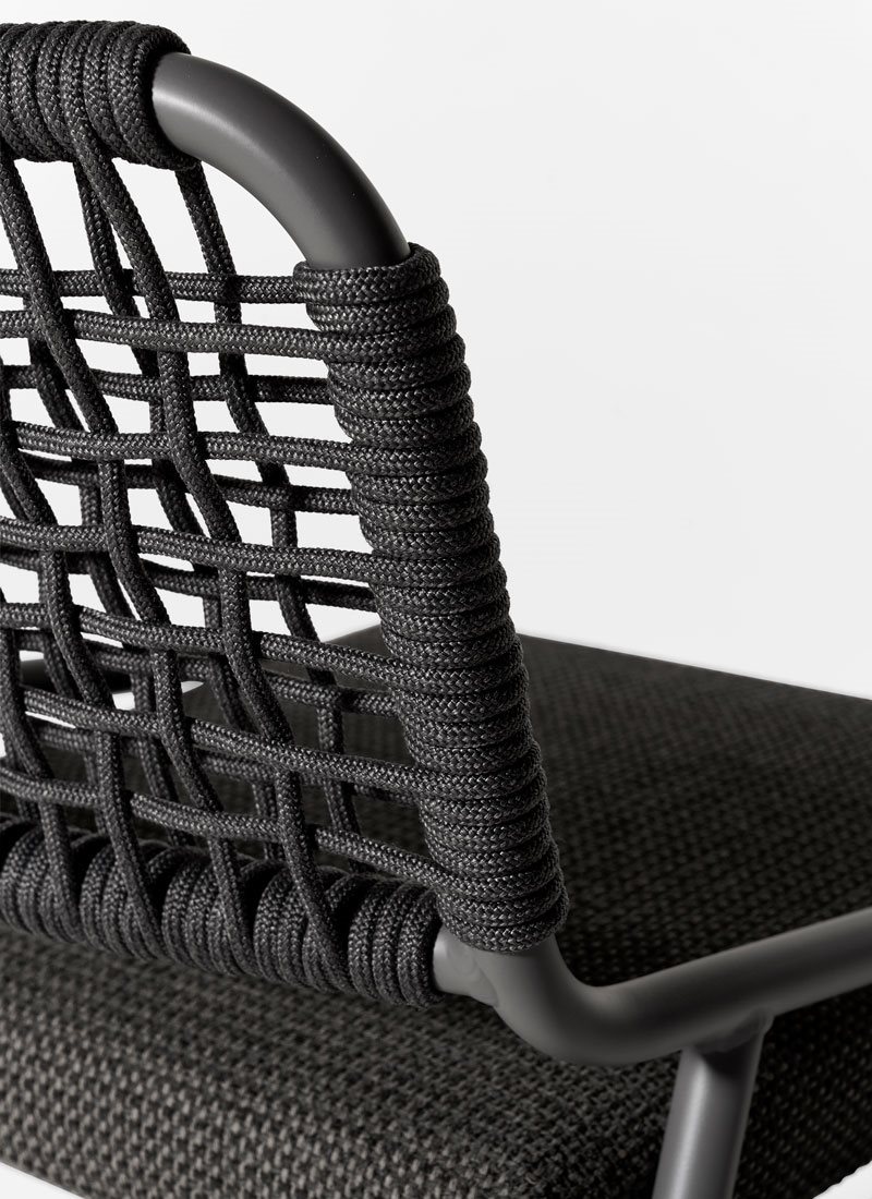 Tai Open Air是一組椅子,這些椅子以戶外材料的巧妙組合為特色。這里的主角是聚丙烯繩,其靈感來自于用于劃船的系泊繩,并由噴漆的鋁制框架支撐;四種顏色可供選擇的顏色- Chalk, Petrol, Elephant 和 Black -使其簡單易用.Tai Open Air可以提供軟墊座椅,也可以提供精巧的手工編織兩種版本,可用于靠背和座椅。