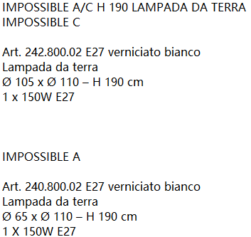 -IMPOXIBLE-IMPOSSIBLE AC H 190 LAMPADA DA TERRA 落地?zé)?/div>