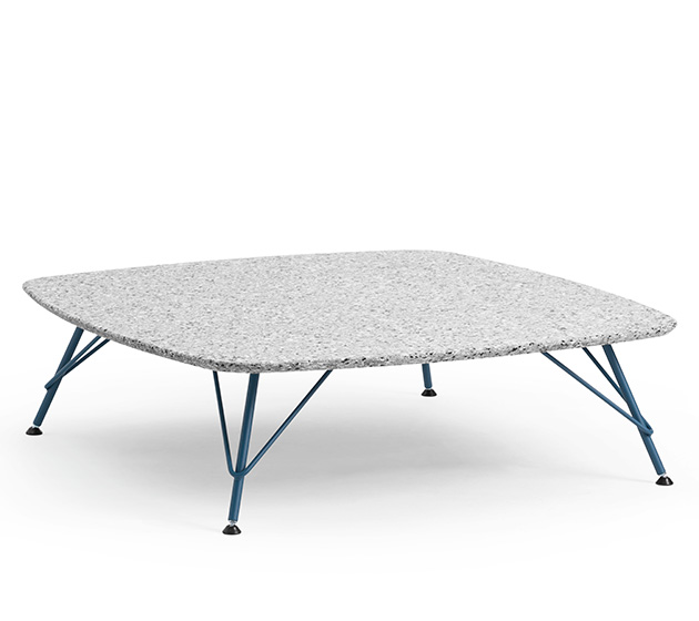 Coffee table with three-legs base in lacquered steel, round top in hpl, metal or marble. The coffee table configurated with hpl or metal top is suitable for outdoor use. In the same collection is possible to find also a coffee table with square top 100x100 cm (39.4 x 39.4 in).