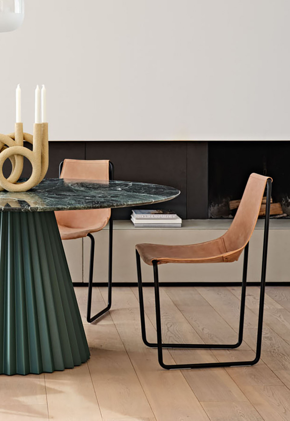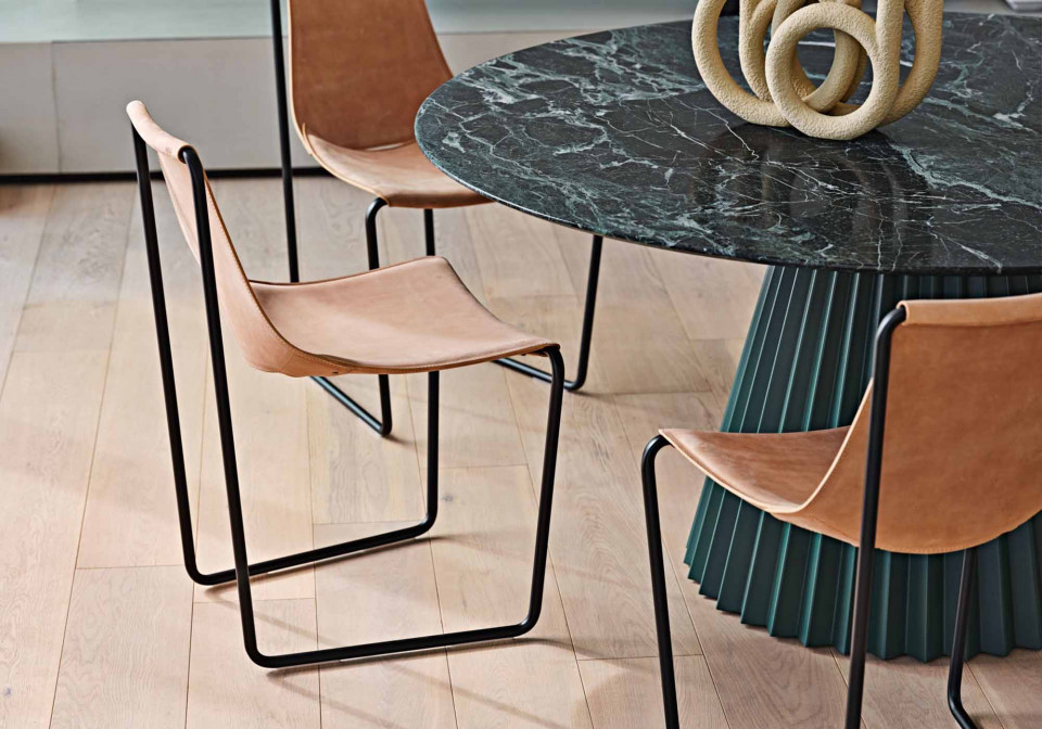 Apelle collection is composed of different versions: chair, armchair, lounge, chaise longue and stool. To complete the collection: desk, sideboard, bookcase, coffee tables and coat rack all available in different finishings.
