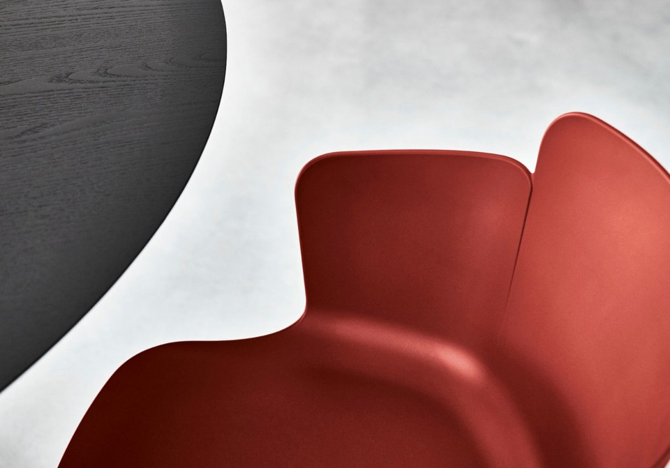 Armchair with four-legs wooden base. Polypropylene shell. Optional: fabric, leather or faux leather cushion.