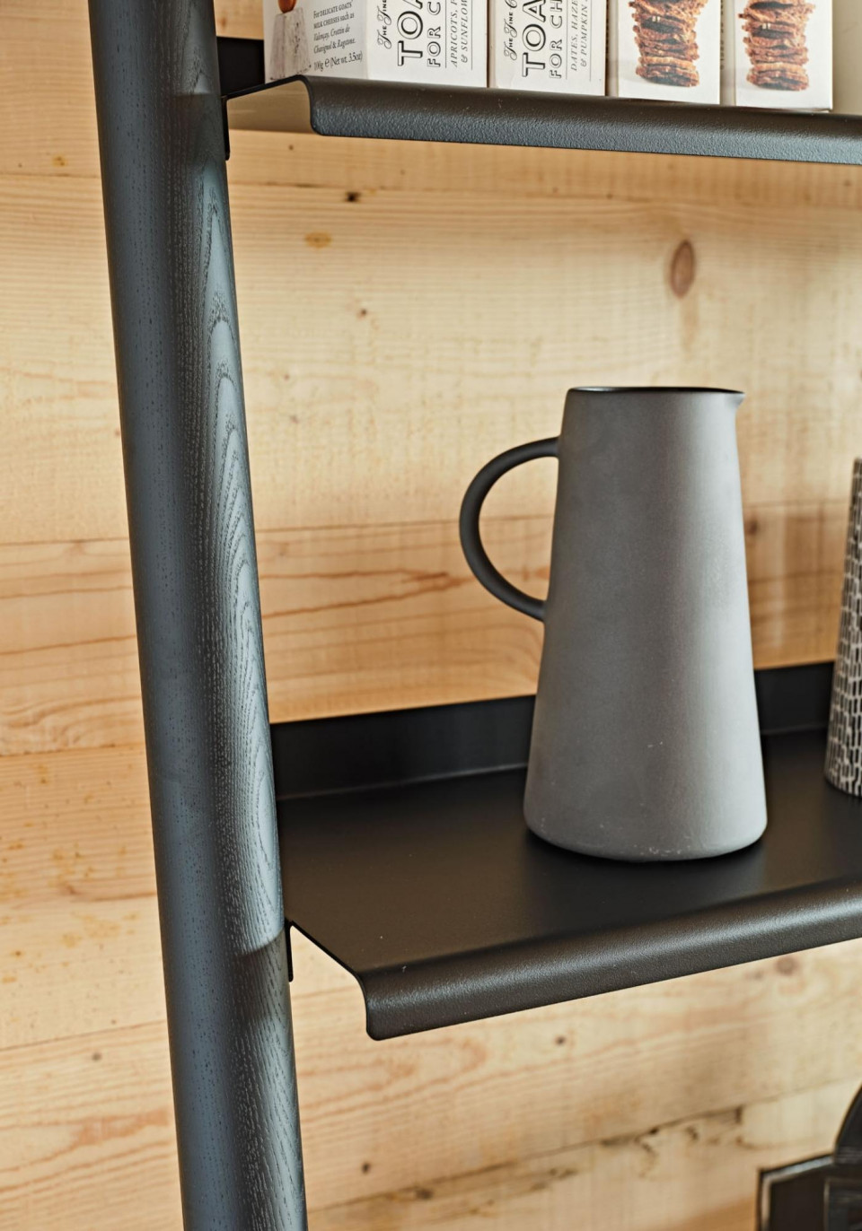 Shelves in lacquered metal.
