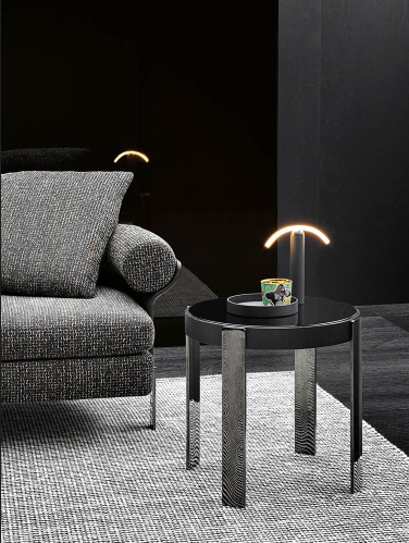 The ensemble is completed by a series of round, rectangular and square coffee tables in different sizes and heights, available in three versions: with top in Calacatta marble or black pate de verre - inserted in a frame in brushed ash wood featuring a Liquorice colour laquered finish - or entirely in brushed ash wood with Liquorice colour laquered finish.