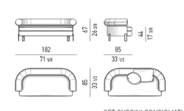 The family comprises a three-seater sofa, an armchair and swivel lounge armchair, available with leather shell and fabric-upholstered seat and backrest, or with total fabric or leather covering. Conceived as precious details to streamline and lighten the design, the steel feet jetting out from underneath sport a shiny Black-Nickel finish. The swivel base of the lounge armchair is available in the same finish.