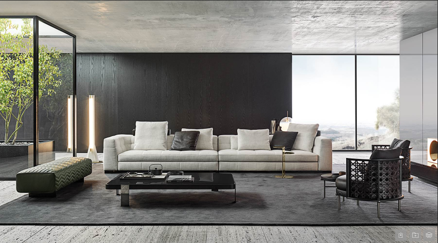 A virtuous combination of its design appeal, visible in the rigorous geometry of its volumes, and the haute couture approach exemplified by its precise, meticulous sartorial craftsmanship, Blazer is one of the creations that best expresses the most authentic artisanal attitude of Minotti.