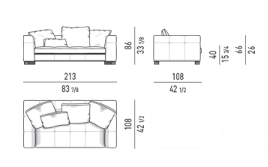 All the surfaces of the elements feature stitching, designing evenly-spaced bands on the covering of the base, cushions, armrests and backrest, and creating a quilting effect that identifies its look and instantly provides a sensation of comfort.