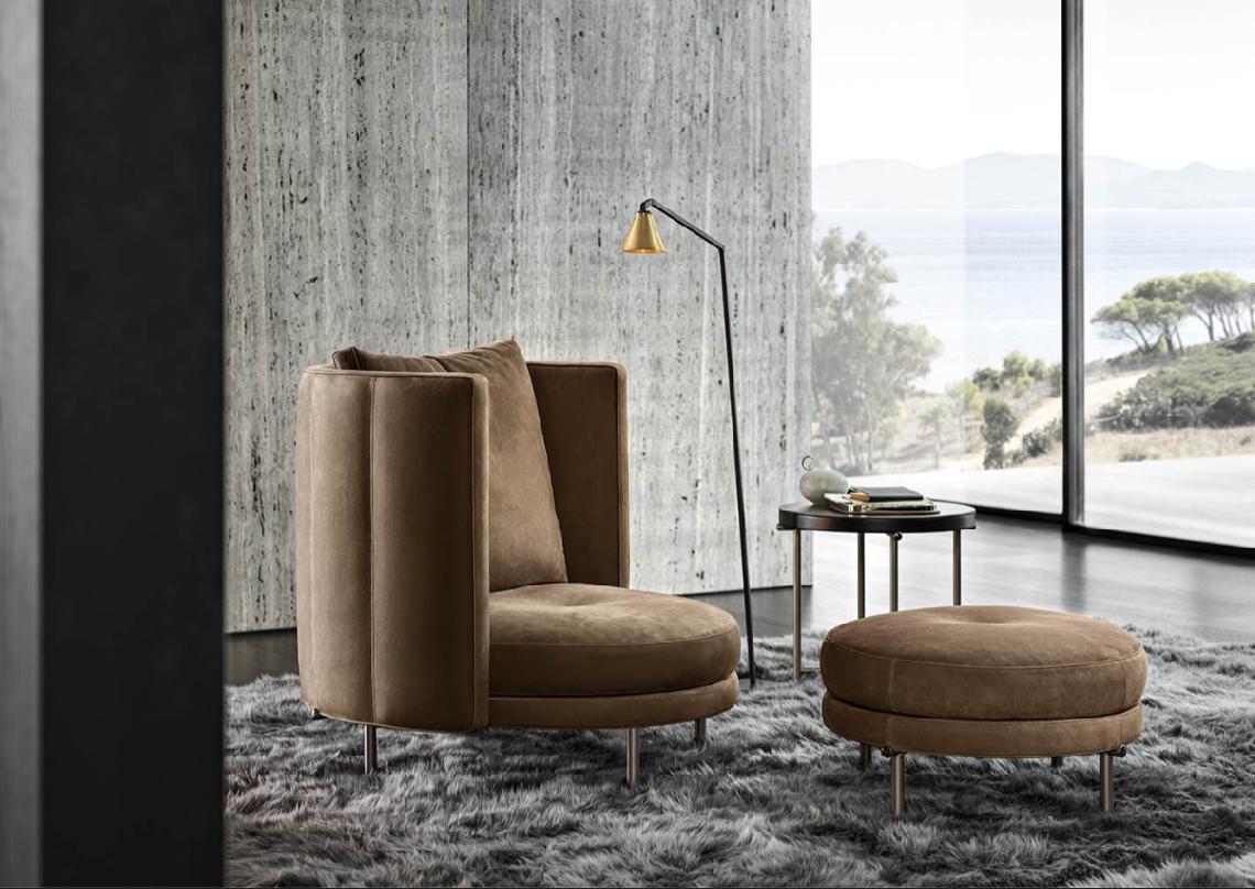 The Torii family includes sofas - with high or low backrest and a linear shape, rounded at the arms - inclined sofas with a combination of two different depths, armchairs and lounge and dining little armchairs, ottomans, coffee tables, and a slender, oval-shaped console table, ideal for placing anywhere in the living area.