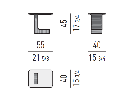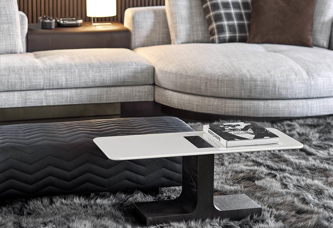 Featuring a solid wood block structure, the base of the Block coffee table is conceived as a solid volume in the shape of an “L” or an upside-down “T”. In Moka lacquered oak wood, it is completed by a top that let the graft appear on the surface in clear view.