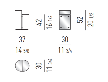 The structure, made entirely from a sheet of polished stainless-steel, is bent to form two “C”s facing one another, offering two semi-circular tops on different levels.