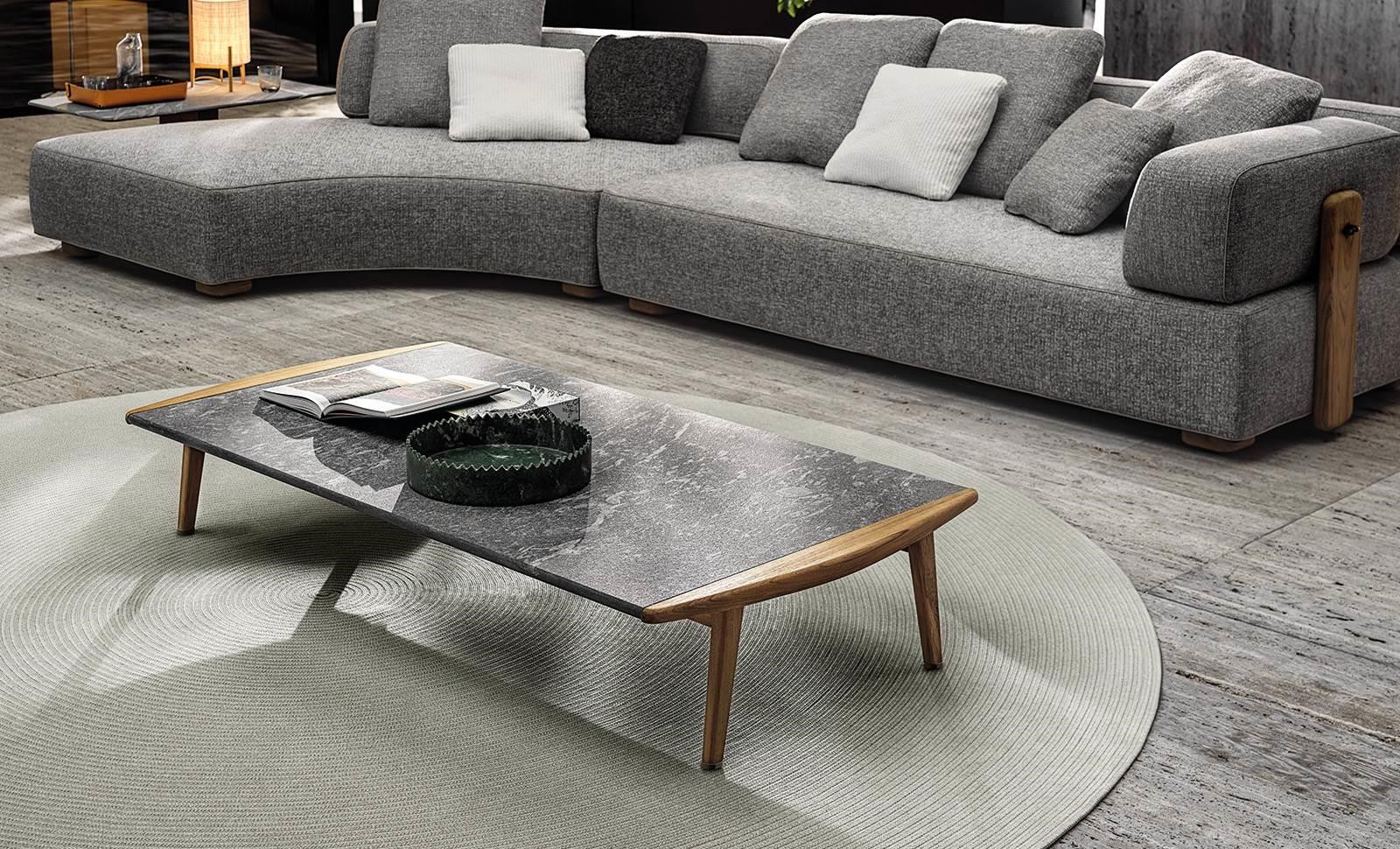 Elongated and slightly curved, rounded and smooth to the touch, it is completely handmade: its precise, well-defined line identifies the entire family, composed of armchair, lounge and dining little armchairs, benches, footstools, coffee tables in different sizes and a dining table.