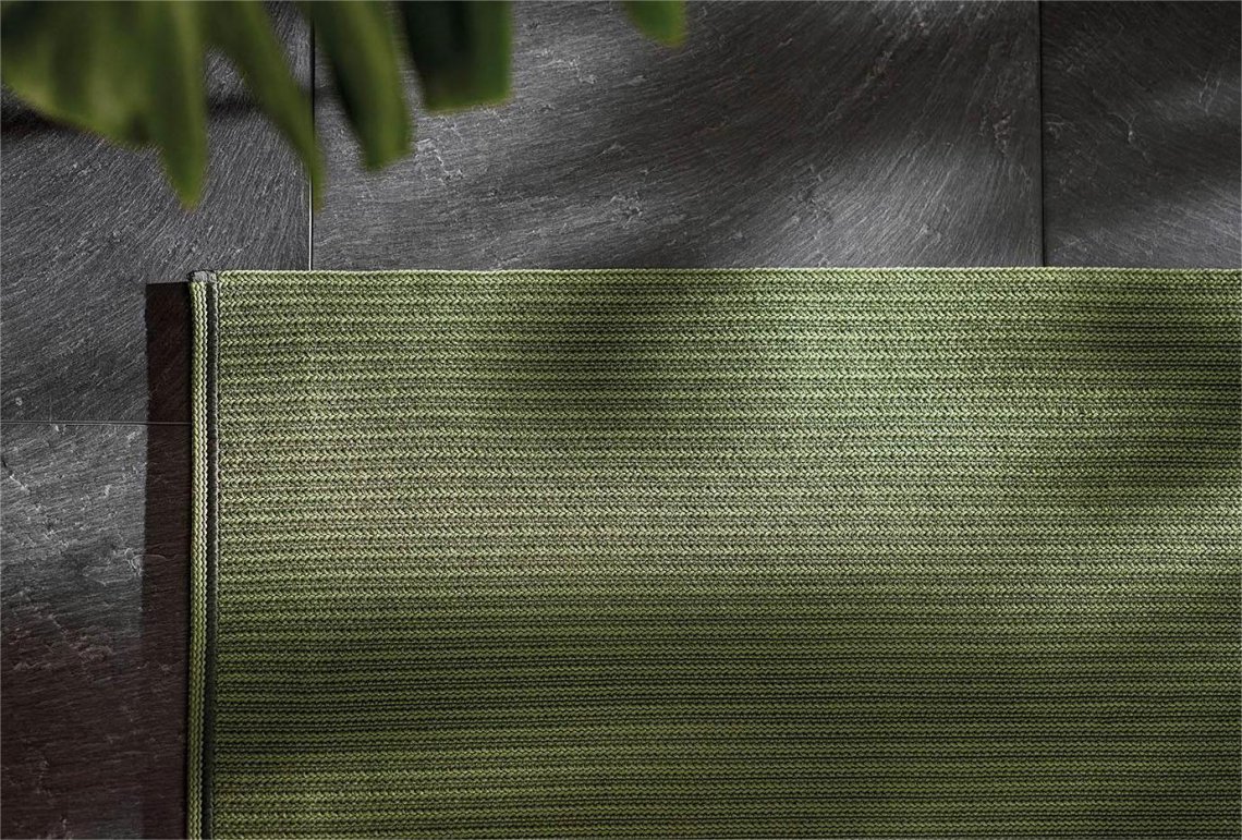Distinguished by its modern vibe and reassuring, sophisticated colour, Avery furnishes outdoor spaces with elegance. The rug stands out for its woven loop structure, made on special looms exclusively