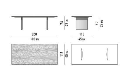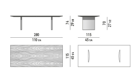 Its very slender top is the line that becomes volume, characterising this light, yet sculptural object. It is charachterized by perimeter thickness of just 16 mm, in palisander Santos or in the stained Dark Brown veneer, both in the polyester matt lacquered finish, or Black lacquered ash.