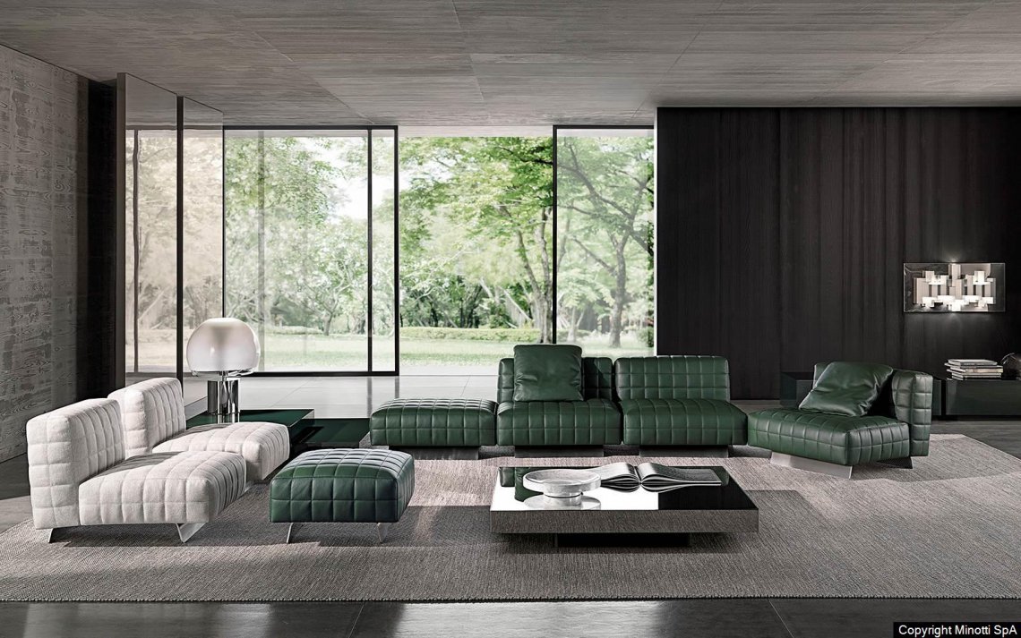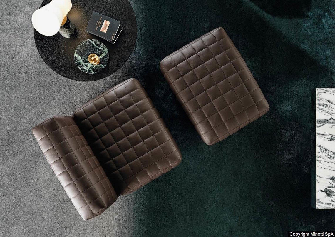 Twiggy presents itself with different elements, always distinguished by Minotti's sophisticated sartorial taste. The family originated as a single armchair in the Small, Large and Deep versions, with and without armrests, but embellished with stitching that reveals the depth of the brand's manufacturing know-how combined with its great ability to make even the most sculptural seats extremely comfortable.
